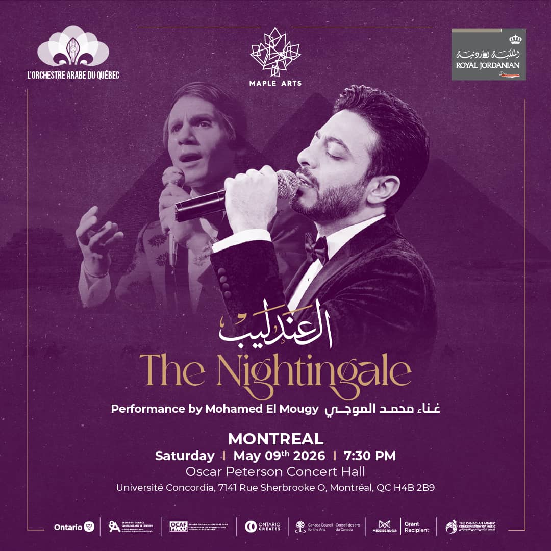 Présenté par Maple Arts, en collaboration avec l’Orchestre arabe canadien, ce concert vous propose une sélection des plus belles chansons d’Abdel Halim, interprétées en direct avec toute la richesse musicale et la puissance d’un orchestre complet.